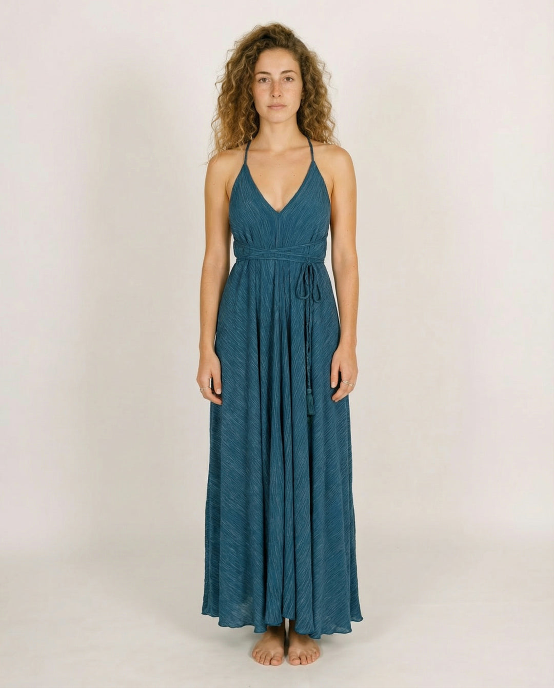 שמלת מקסי שסע גב וחזה בורדו, אלמוג זהב