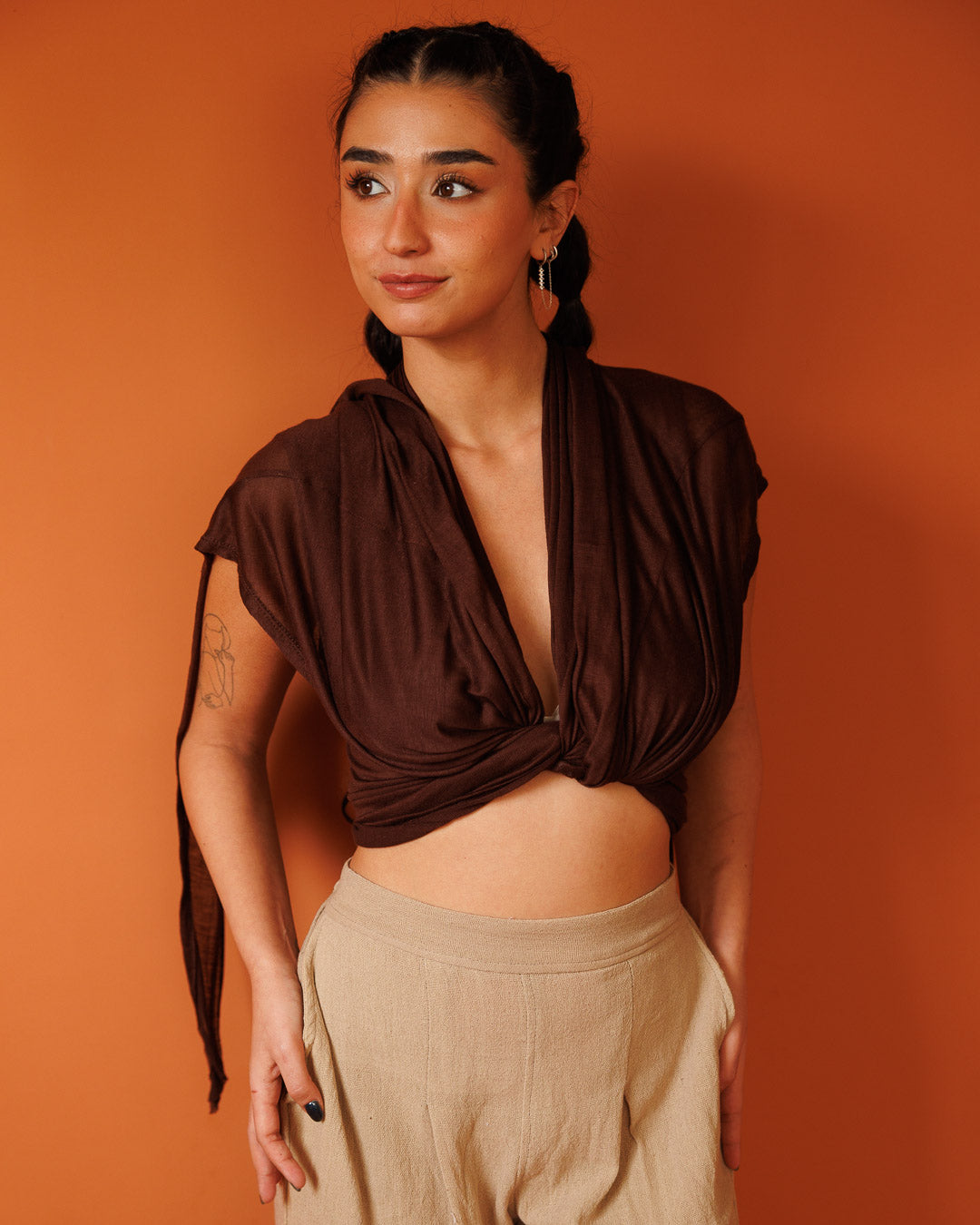 וסט, קימונו/חולצת קשירה כותנת במבו חומה לנשים