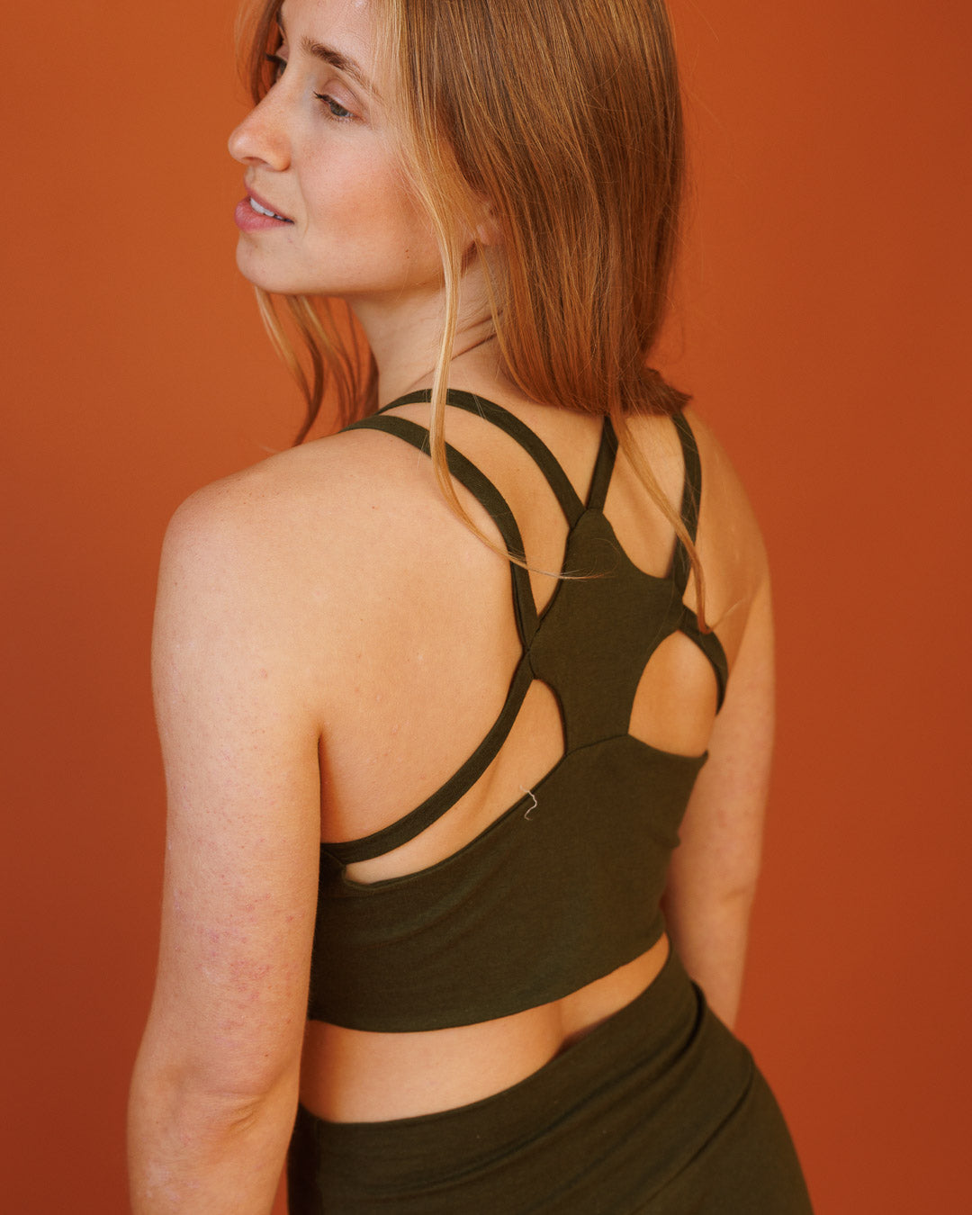 טופ כותנת לייקרה, מעוטר מעוין בגב בירוק זית