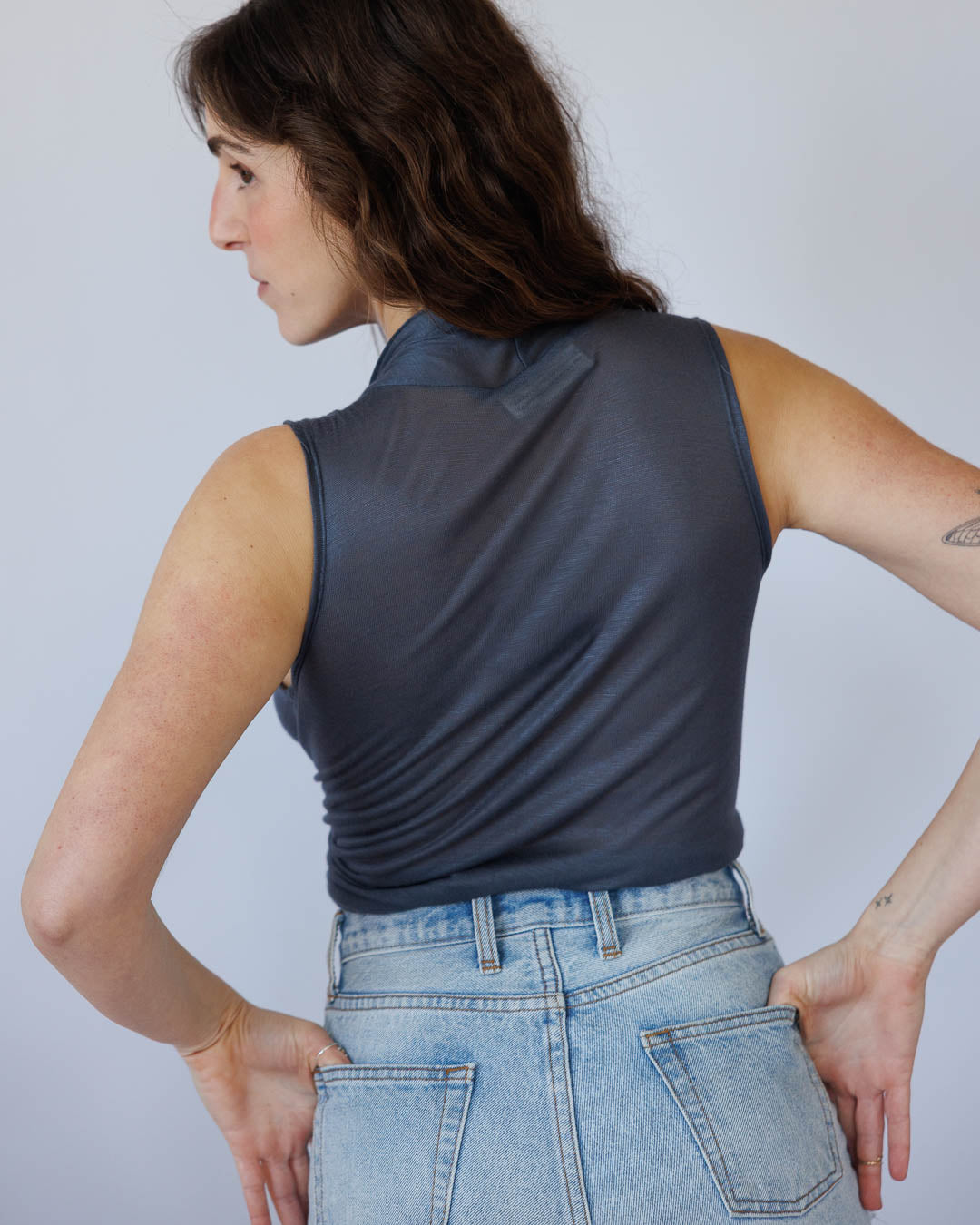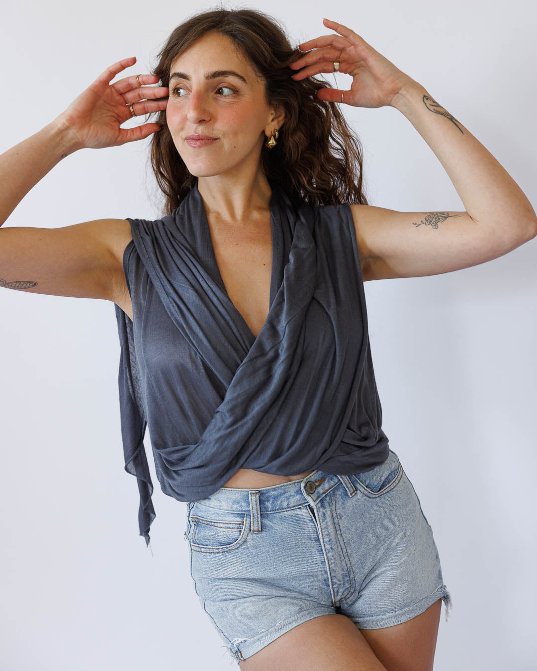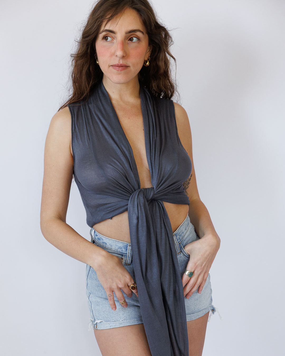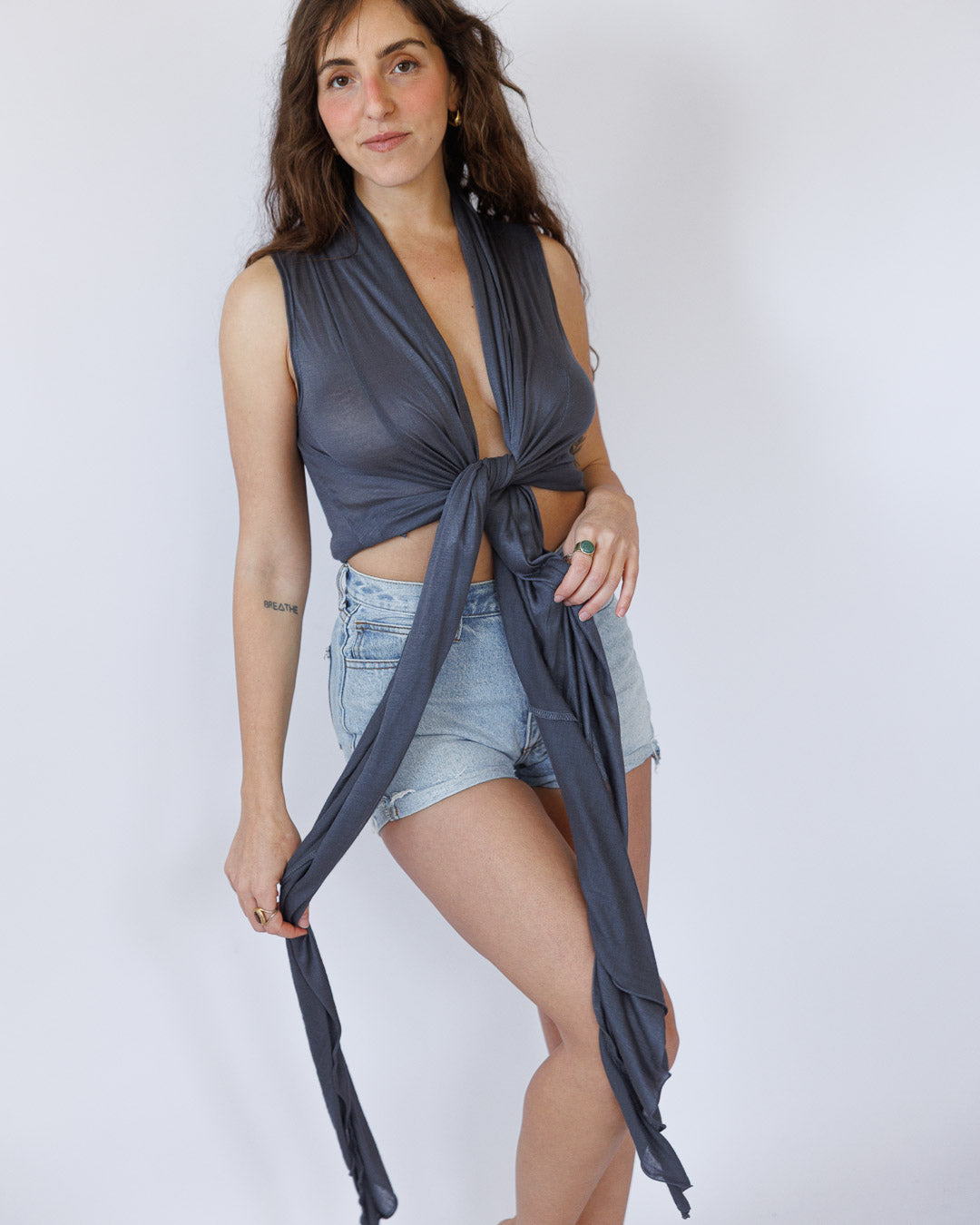 אלעדן - וסט כותנת במבוק אפור רך ונעים לאישה. משתנה גם ל3 סוגי חולצות קשירה