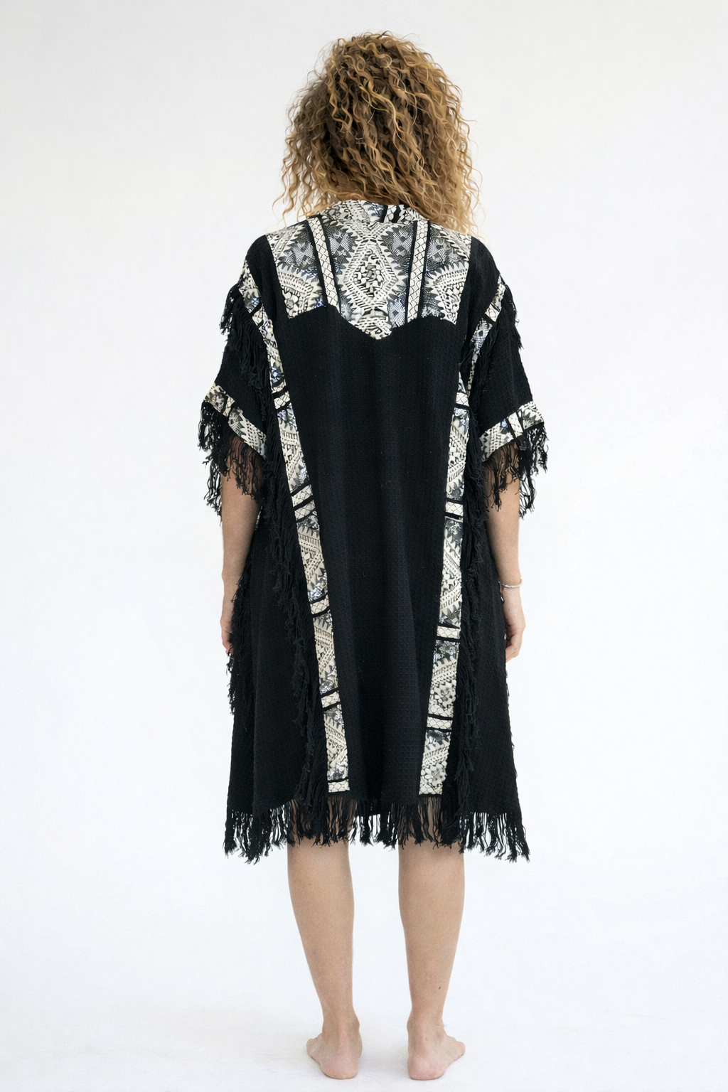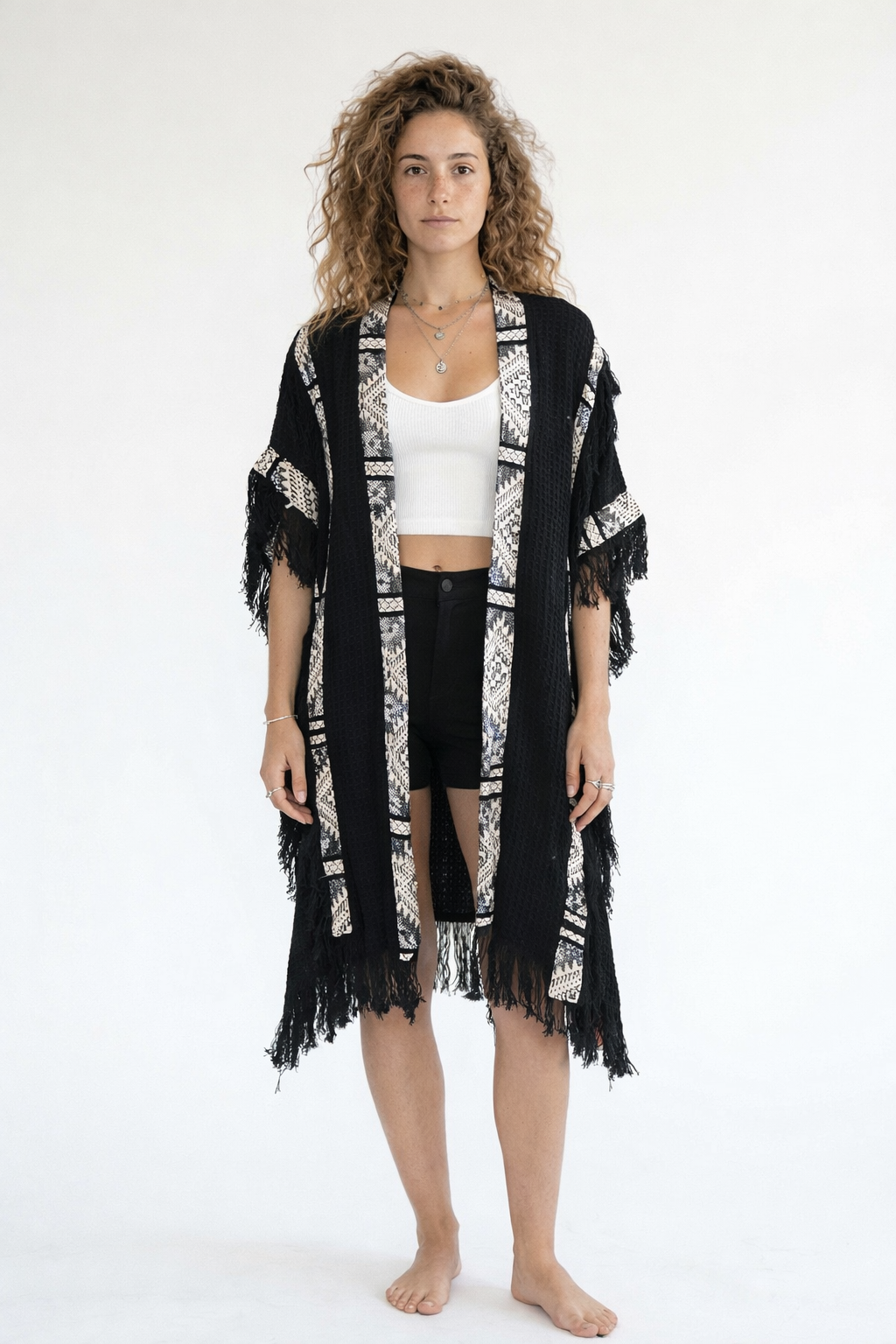 ז'קט פיקה, קימונו חורפי, שבטי בצבע שחור לאישה- בורדר שחור מנצנץ