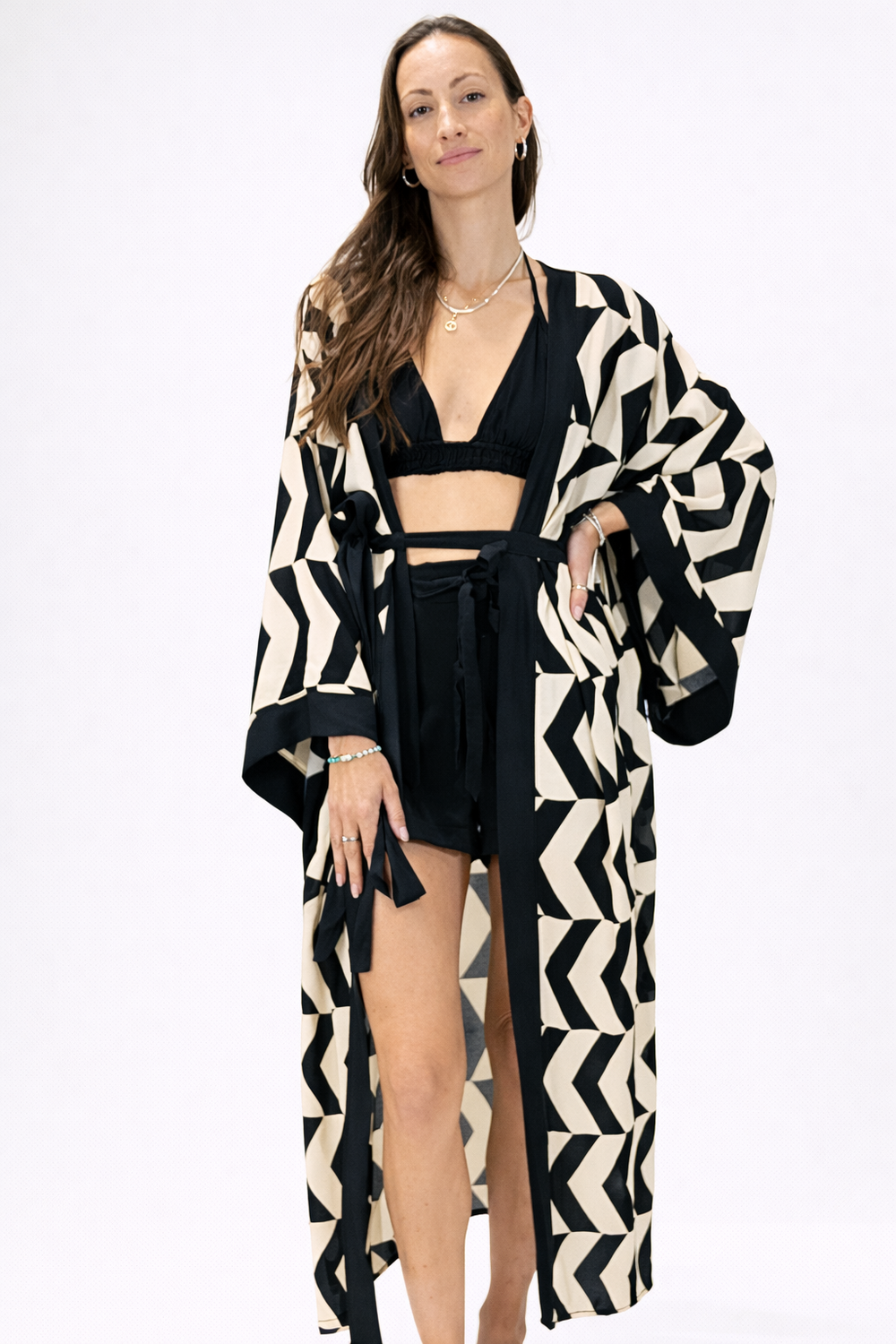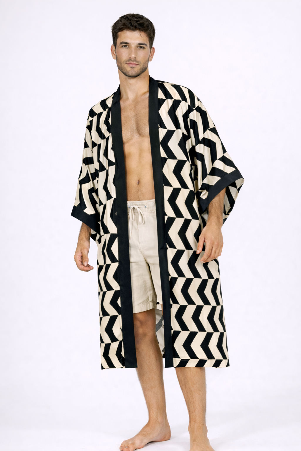 קימונו/ עליונית ויסקוז, שחורה נטורל זיגזג לגבר