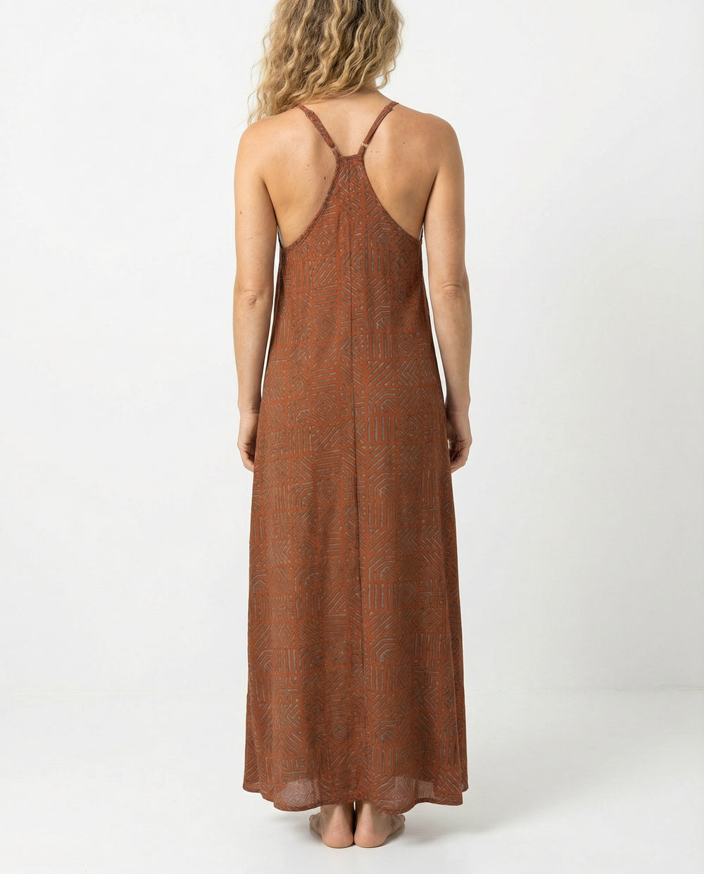 שמלה מקסי ויסקוז אדומה, שסעים, בהדפס שבטי לבן