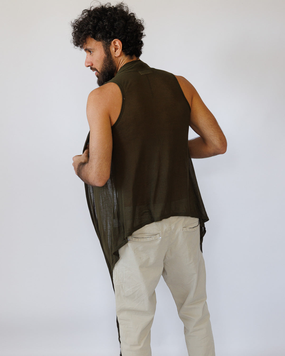 - גזרה: וסט/קימונו ללא שרוולים | א-סימטרי: קצר מאחור וארוך מאוד מקדימה