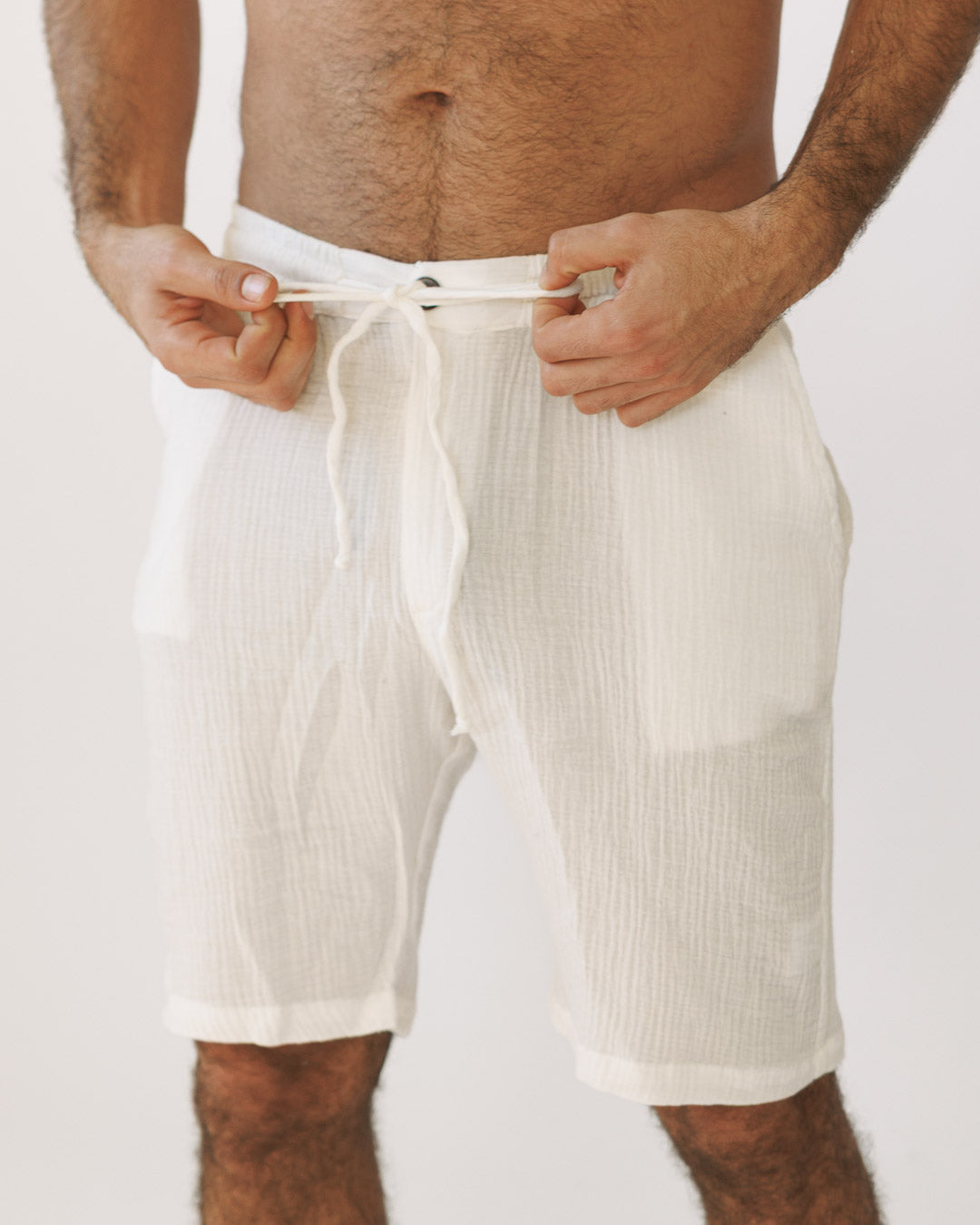 מכנס כותנה קצר, מעוטר משבצות עדינות לבנה לגבר (Size)