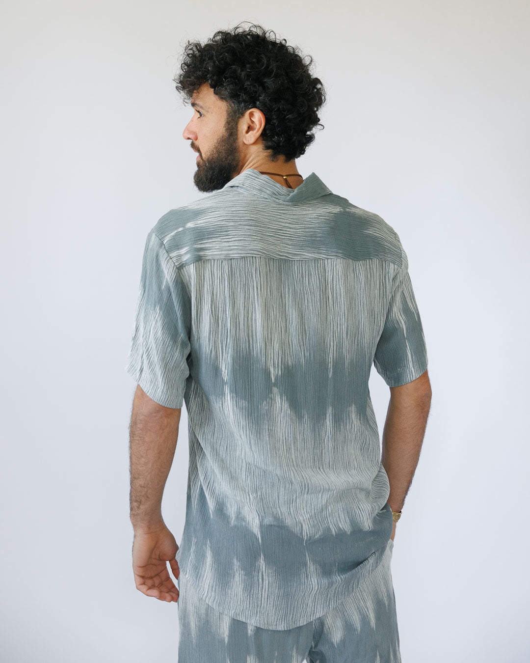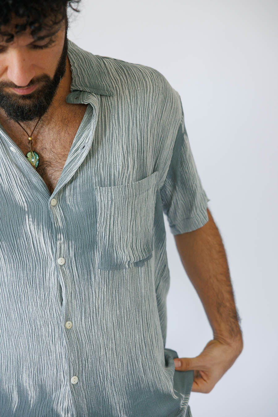 מכופתרת קרפ קצרה אפורה בצביעה משופשפת, עם כיס, לגבר (Size)