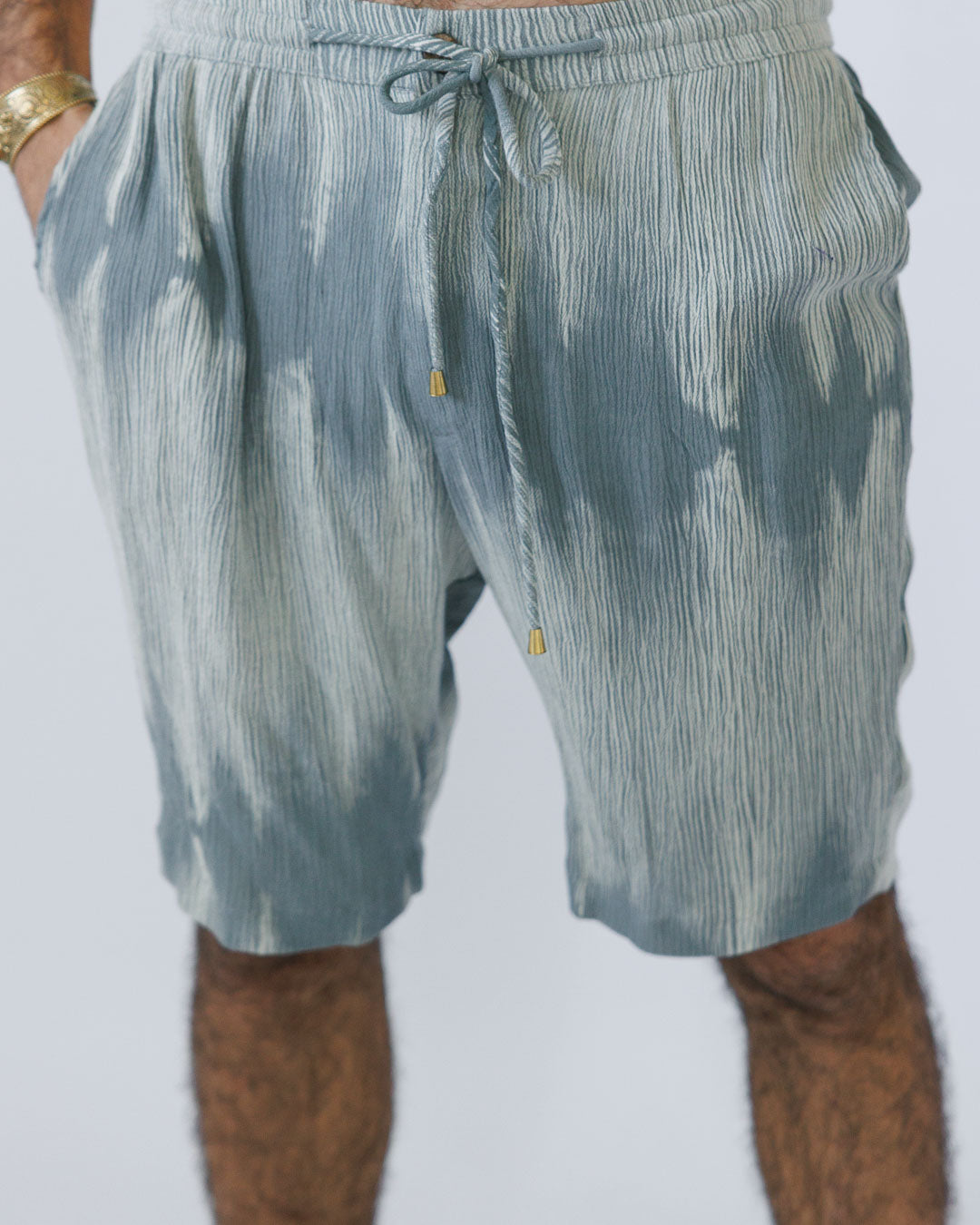 מכנס קרפ קצר אפור בצביעה משופשפת לגבר (Size)