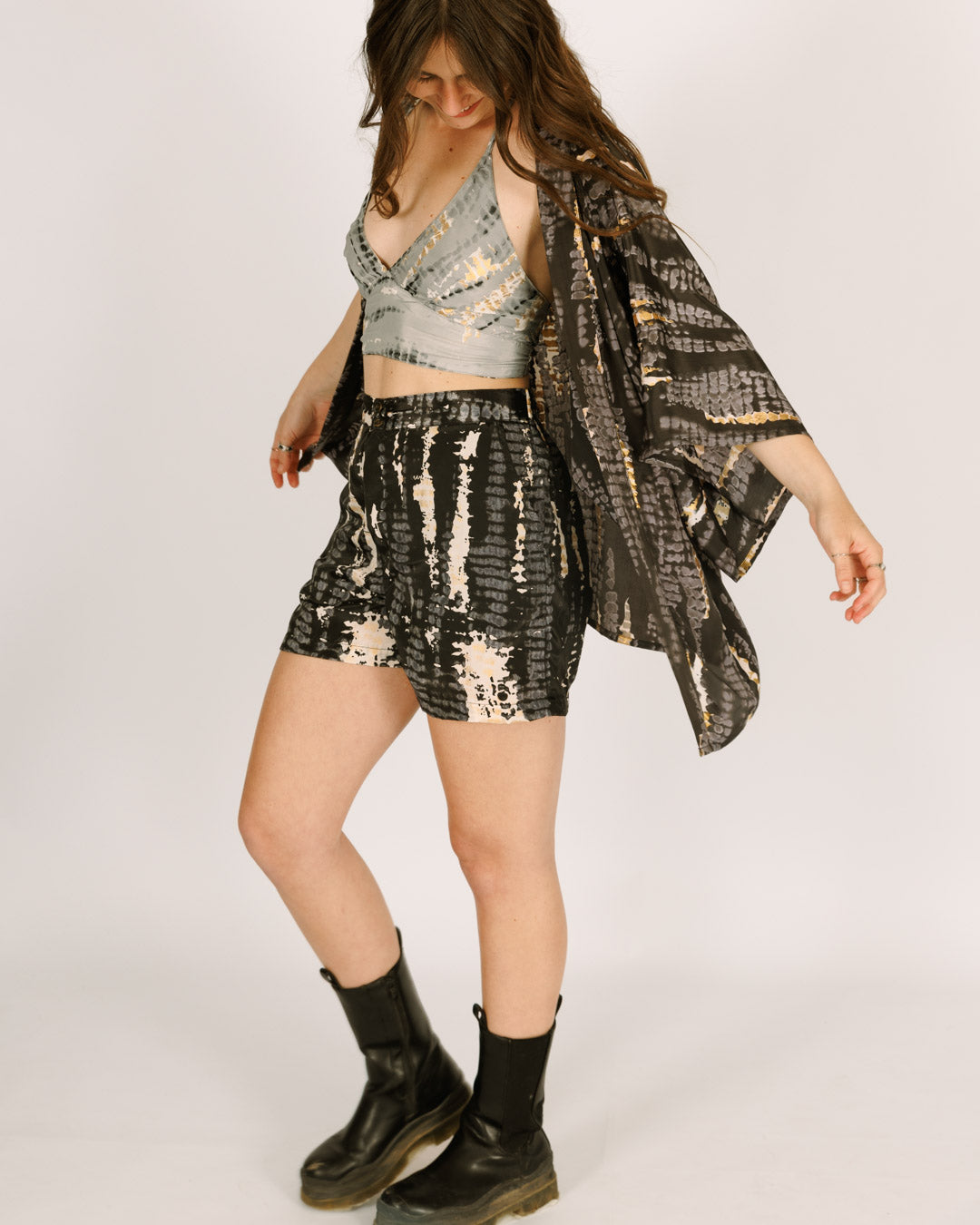 - קימונו משי קצר בהדפס שחור טאי דאי לבן וזהב הוא פריט החרישה השווה הבא שלך!