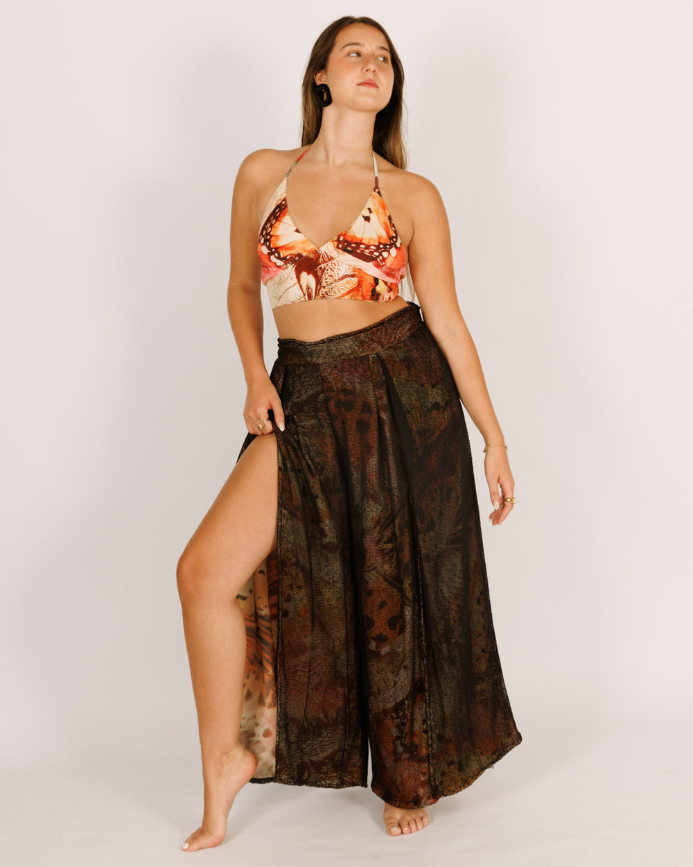 סט: טופ דו צדדי + מכנס ארוך רשת שסעים, פרפרים כתום
