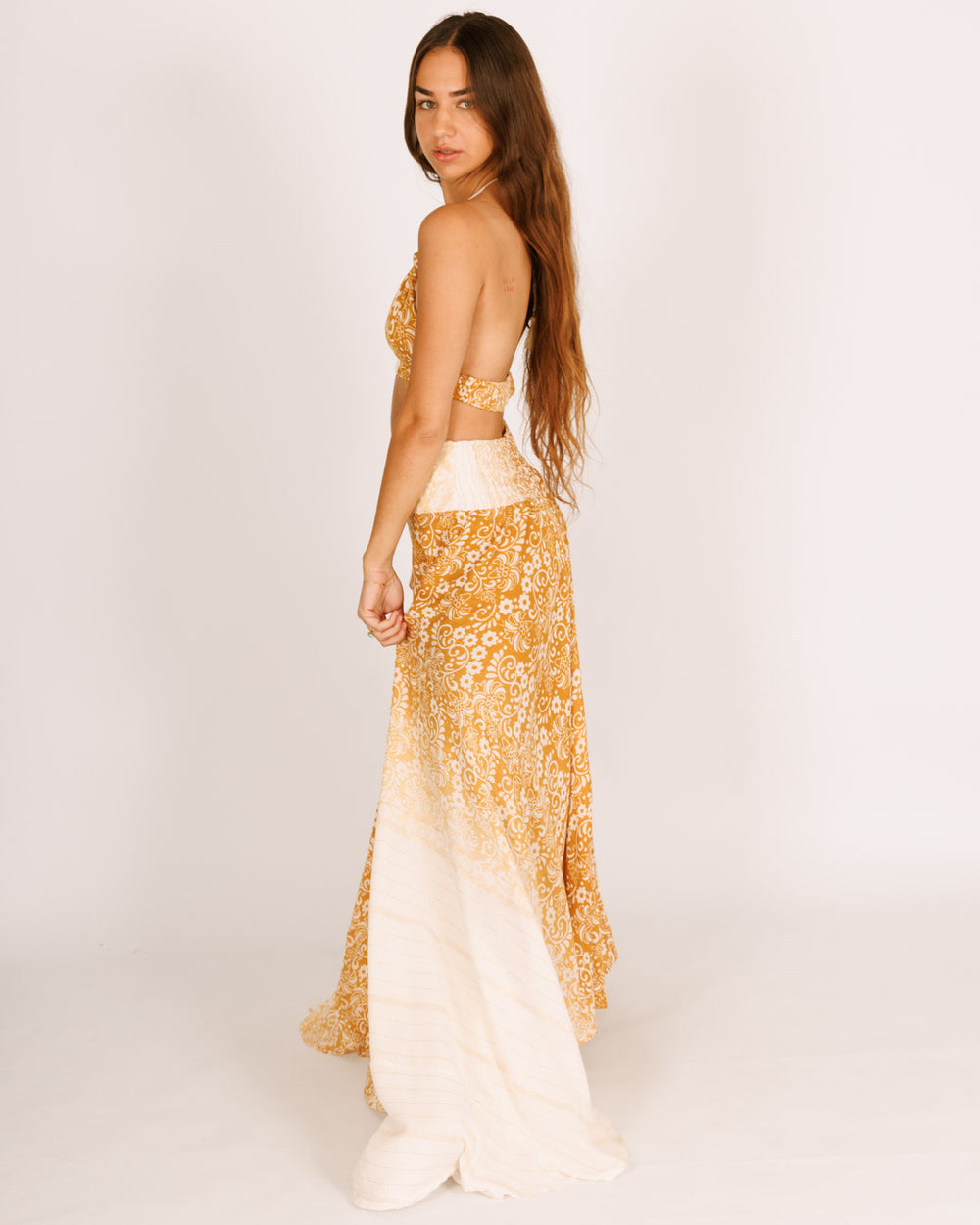 סט: טופ משולשים + מכנס מטריה, לבן פרחים צהובים