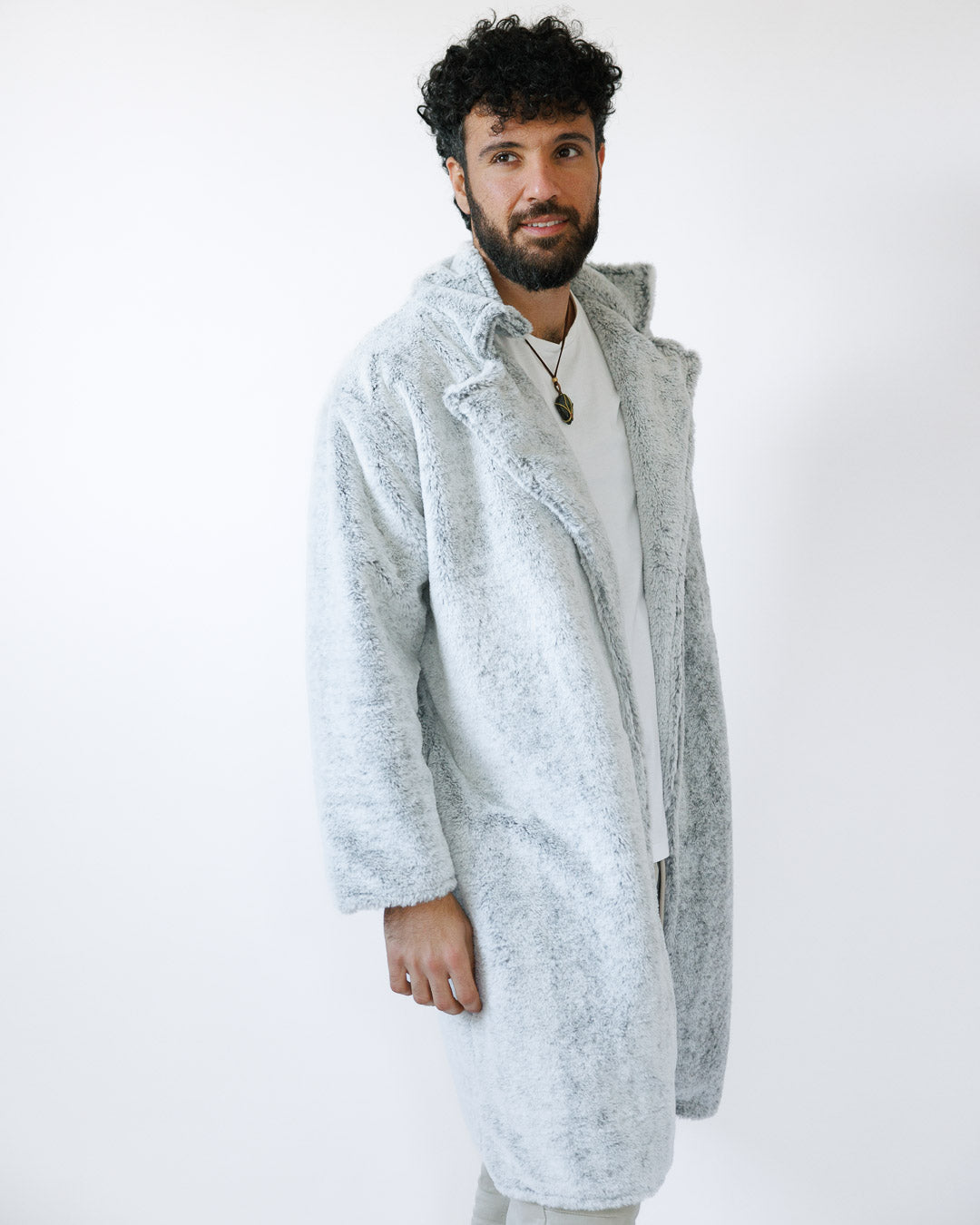 מעיל פרווה אפור לבן יוקרתי לגבר