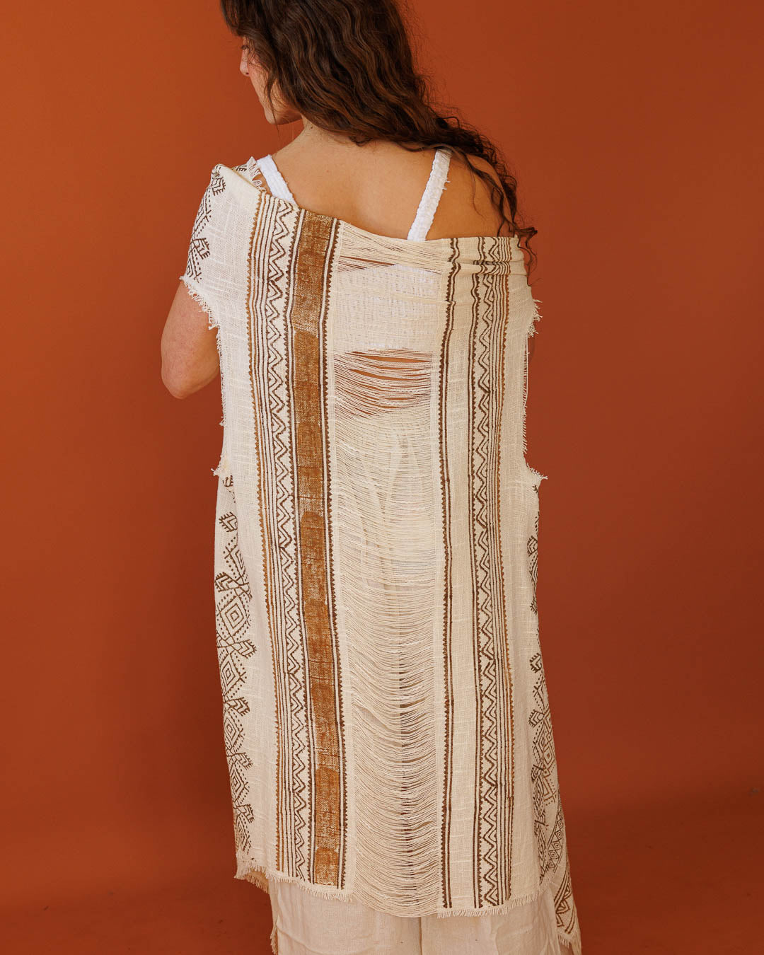 וסט כותנה פרום נטורל, בהדפס חותמות עץ ידני שבטי לאישה