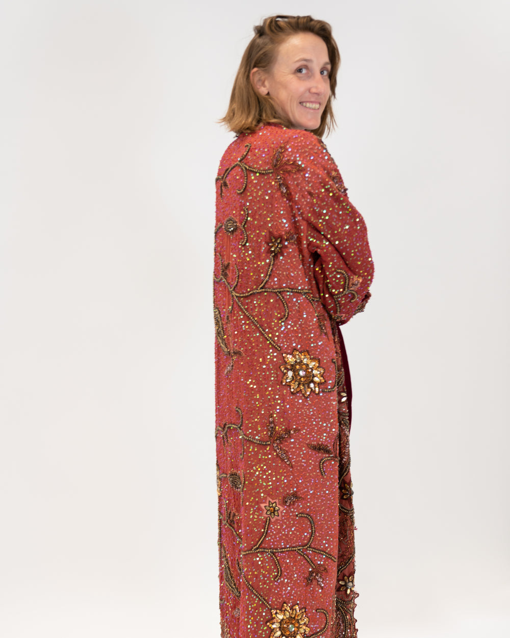 קימונו מקסי רקמה ורוד3, יחיד מסוגו, שרוול קצר לאישה