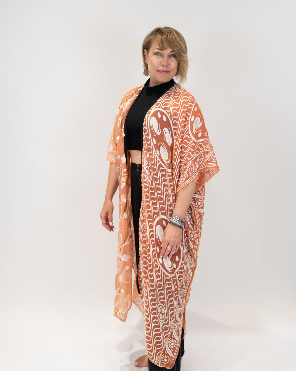 עליונית/ קימונו שיפון, יחיד במינו, צהוב פרחוני לאישה