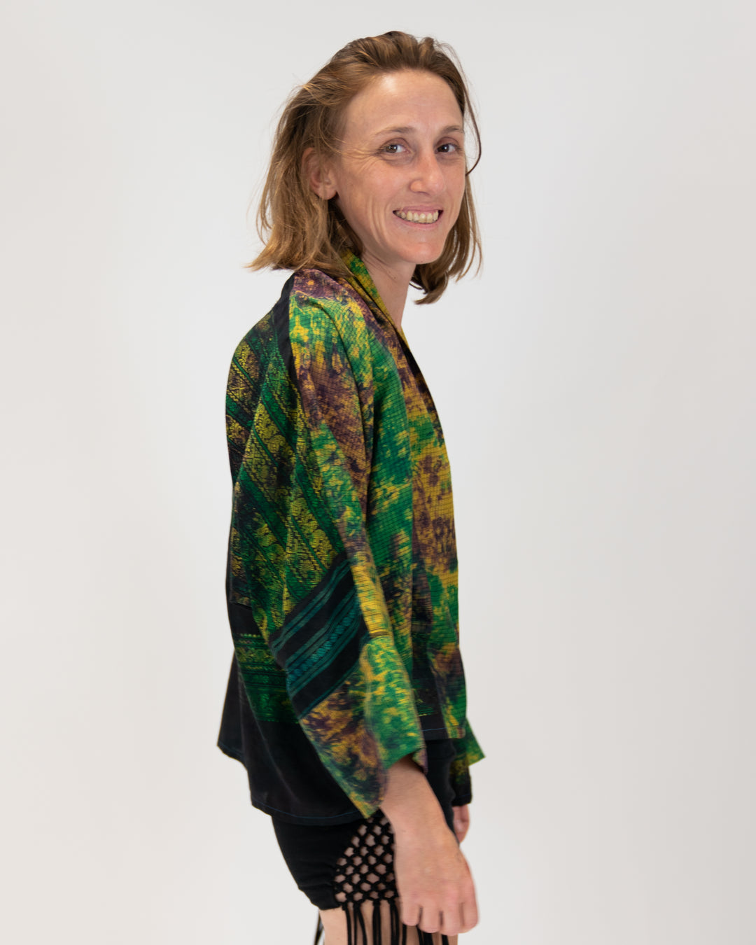 קימונו יחיד מסוגו צהוב ירוק כתמים קצר - טאי דאי