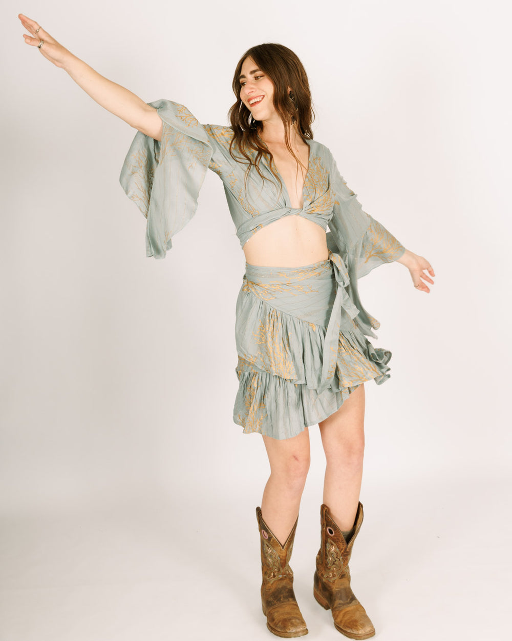 חצאית מיני תכלת קשירה מלמלה, אלמוג זהב